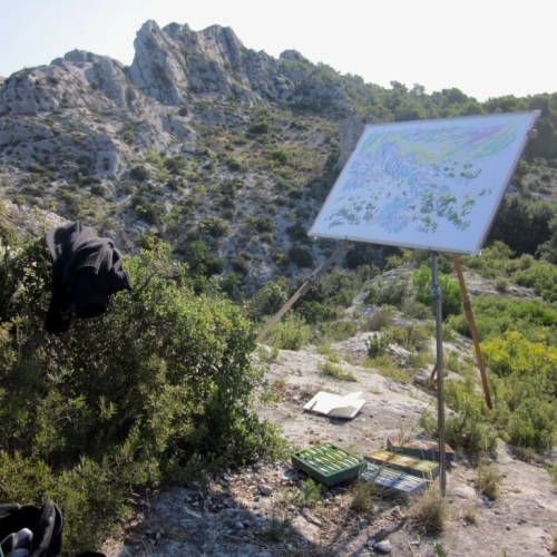 In 2009 ben ik twee keer gedurende een aantal weken wezen tekenen op de hellingen van Montagne Sainte Victoire, de berg die door de schilderijen van Cézanne een belangrijke plaats heeft gekregen in de kunstgeschiedenis.